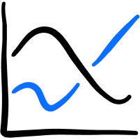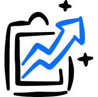 • A hand-drawn icon of a line graph with a blue line ascending, and a black line descending.