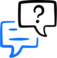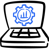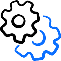 • A hand-drawn icon of two overlapping gears, the top one in black and the bottom one in blue.