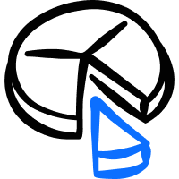 A hand-drawn icon of a black pie chart with one segment highlighted in blue.